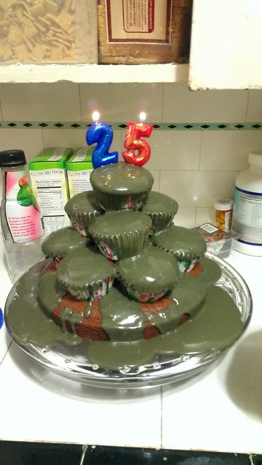 Allison's mom also sent a cake mix for us to make. And this is what came of it. Poo frosting. But once you get past the look of things, and taste it, it is good to behold.